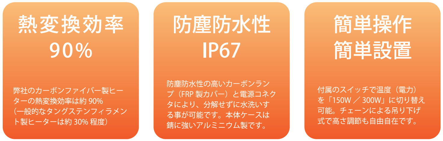 発熱体に熱交換率の高いカーボンファイバーランプを採用しており、