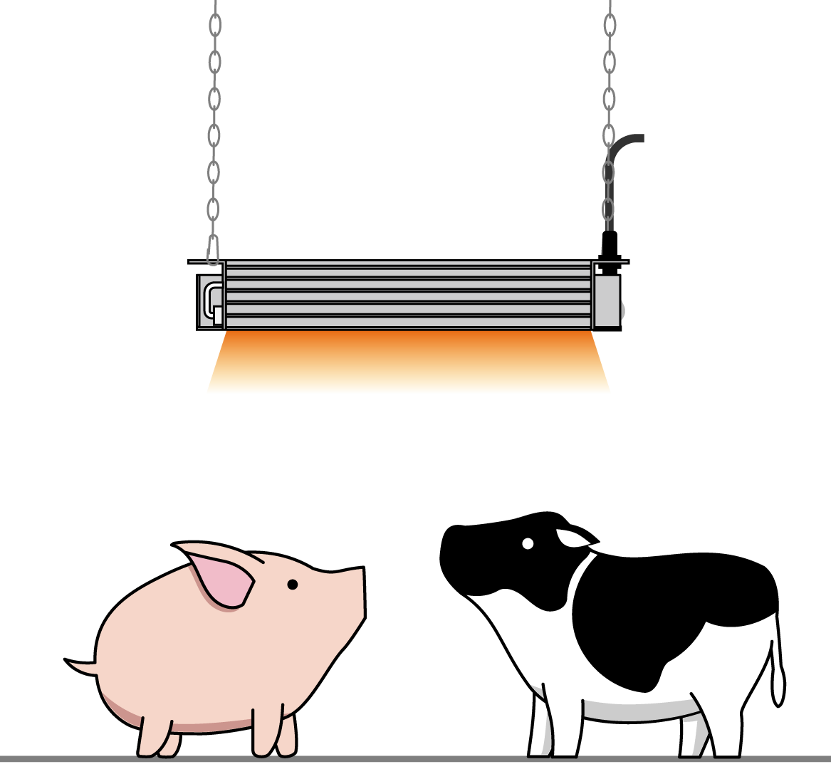 遠赤外線効果で仔豚や仔牛の身体をしっかり温めます。