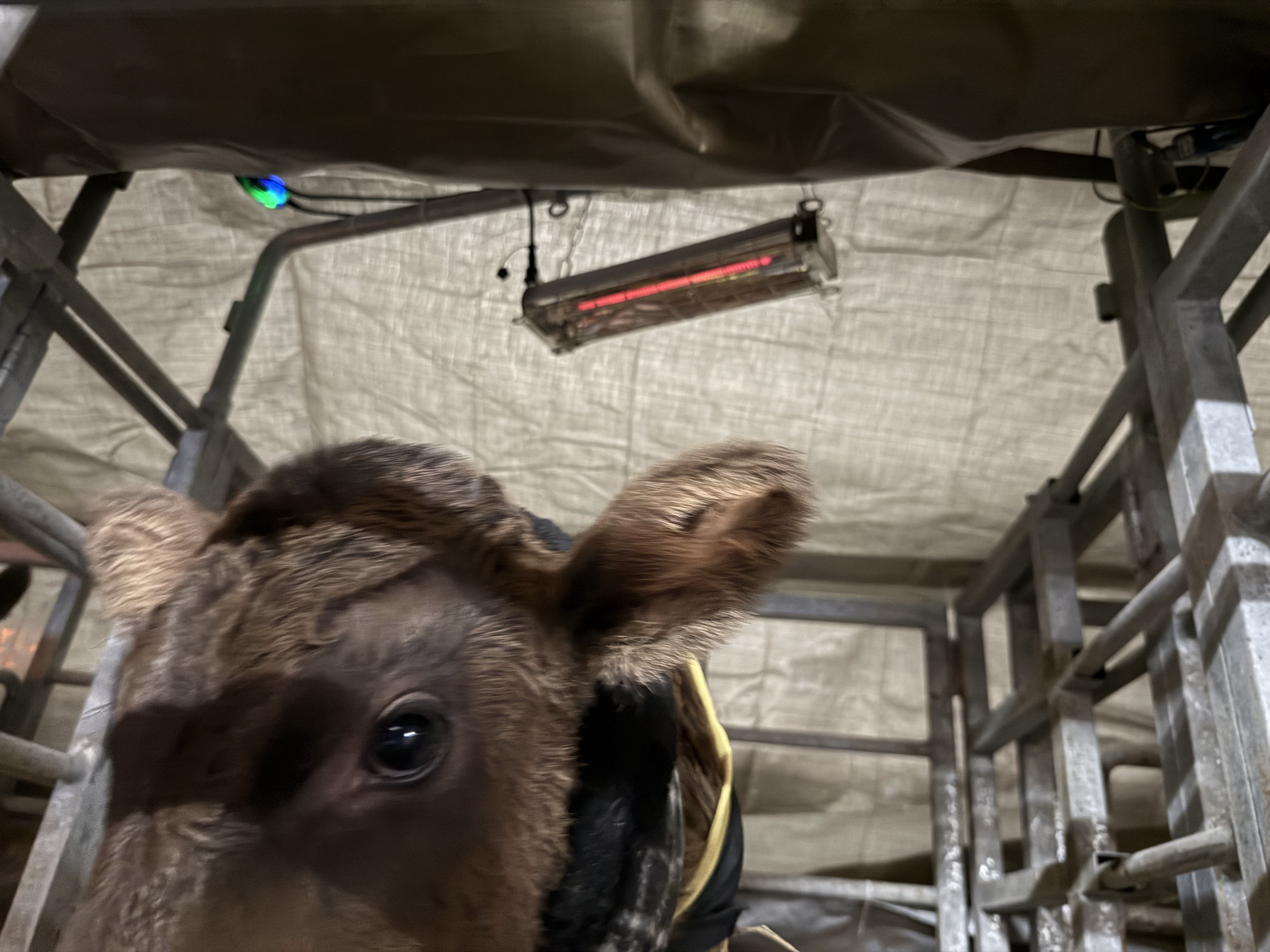 確かに仔牛はヒーターの真下にいて、のんびりしてる様子でした